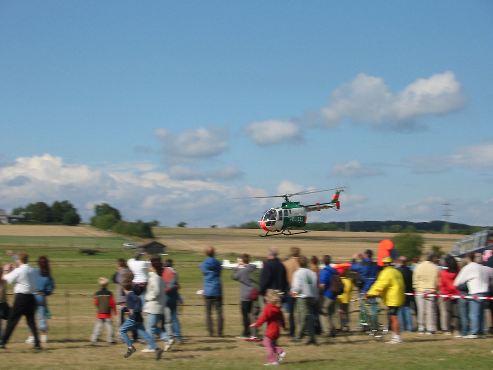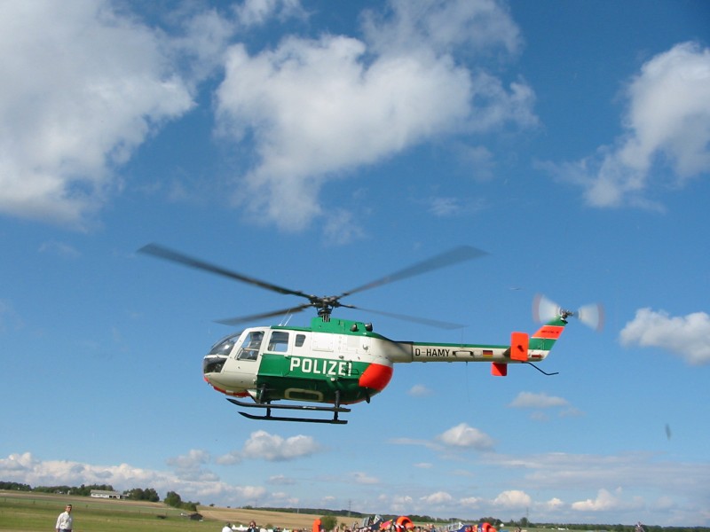 und zeigt einen Polizeihubschrauber im Durchflug mit ca. 200 km/h !!